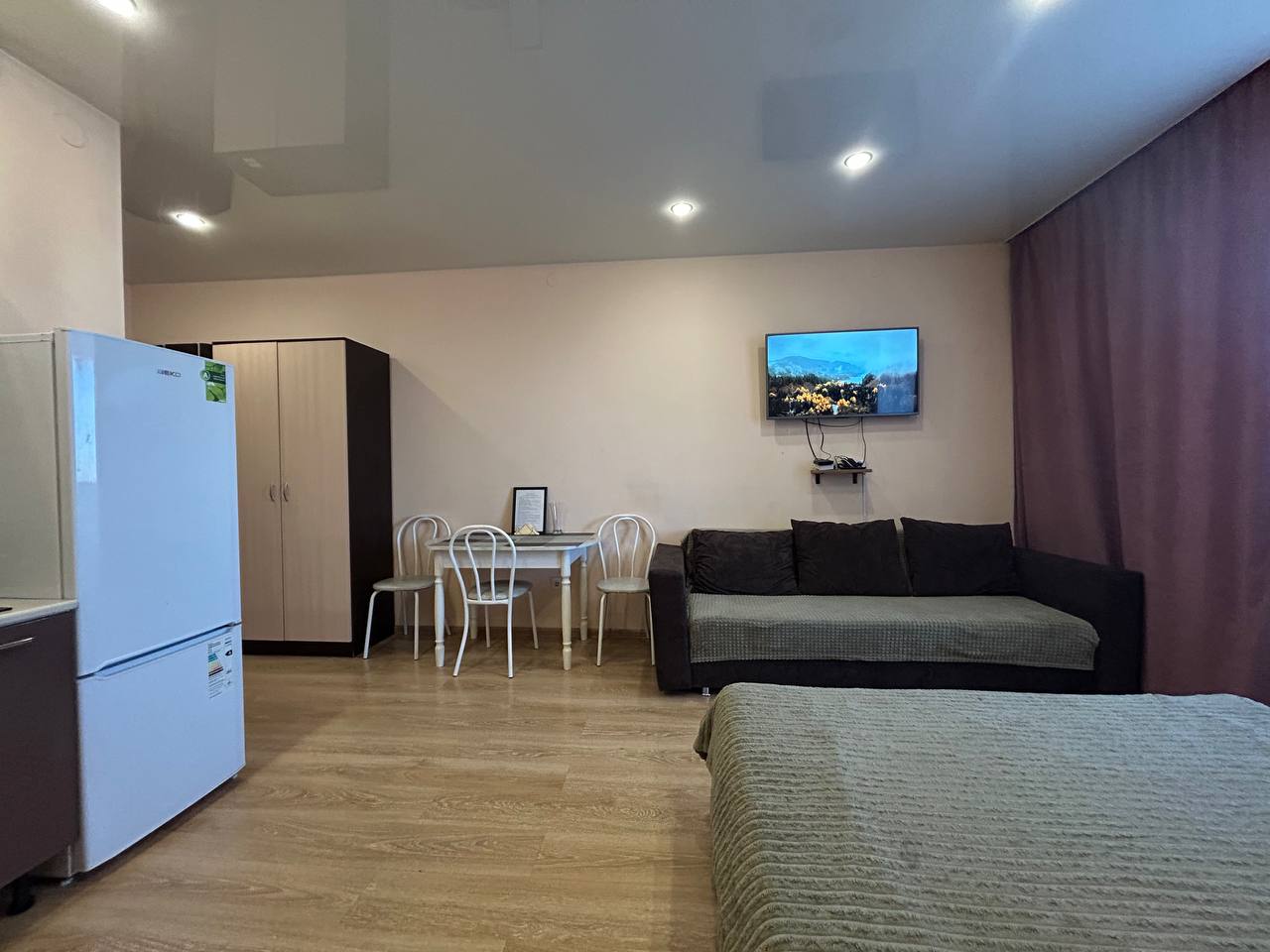 - Количество комнат: студия (спальня, гостиная, кухня)